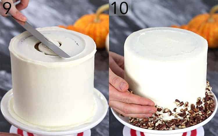 10. Apply a skirt of the chopped toasted pecans at the bottom.
